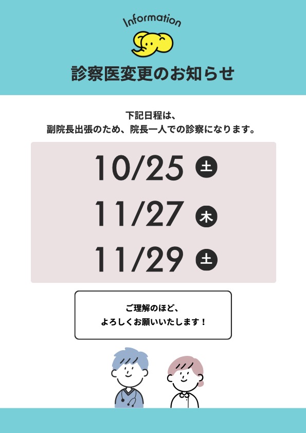 診察医変更のお知らせ