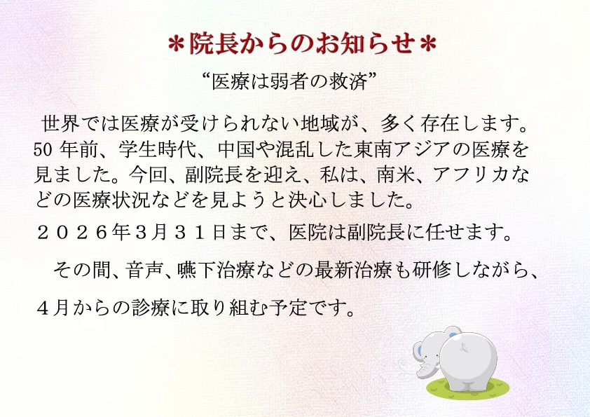 当院では今後、局所麻酔による耳・鼻の手術を外来で受けていただけるよう、設備や体制の整備を進めてまいります。患者さま一人ひとりの生活環境やご希望に応じた柔軟な治療選択ができるよう努めてまいりますので、気になることがあればお気軽にご相談ください。